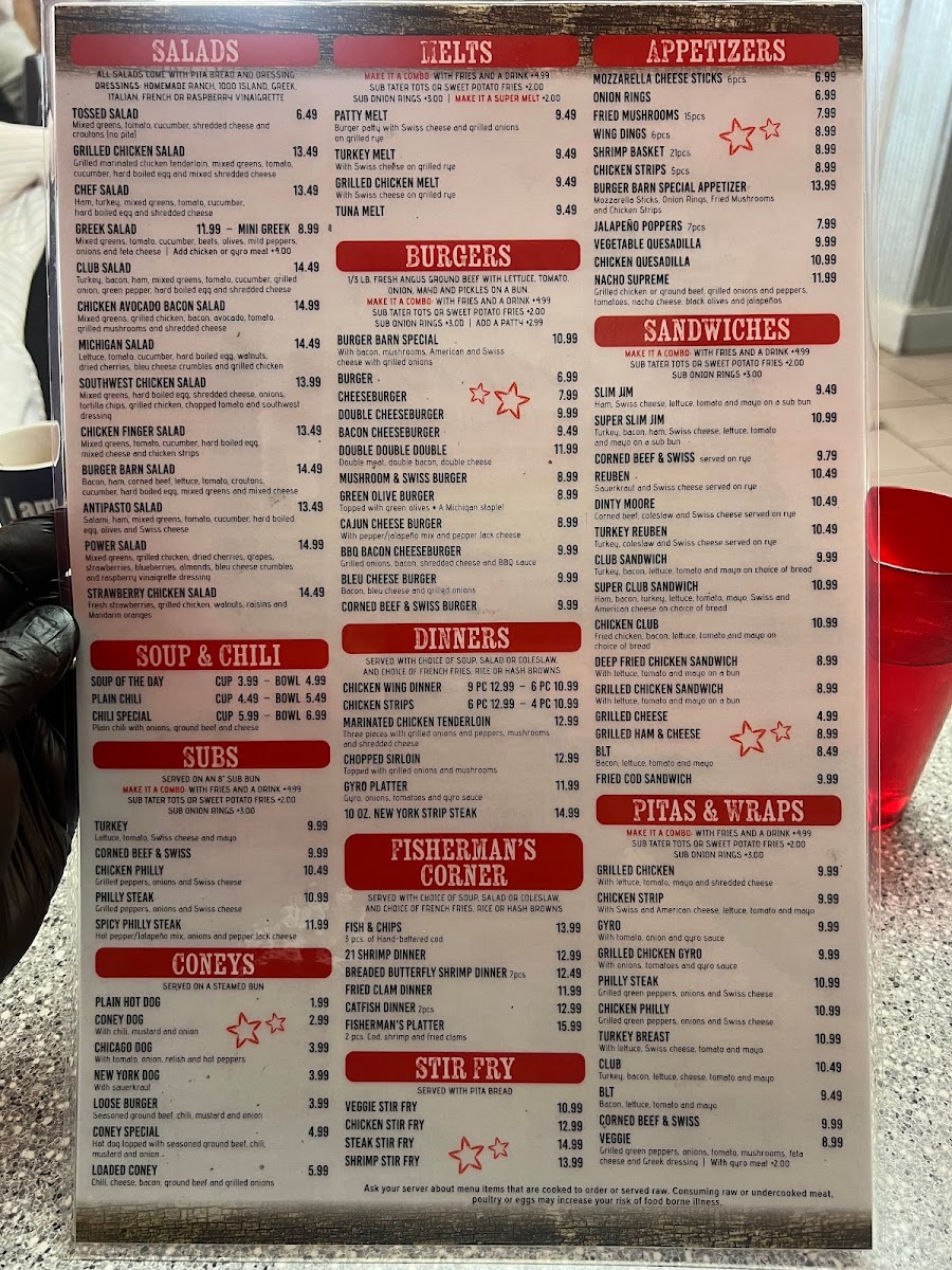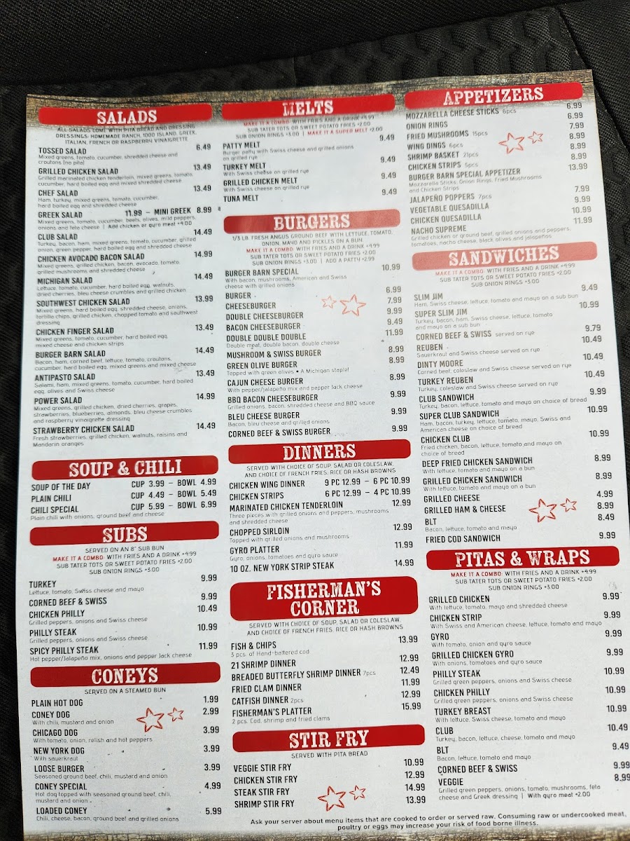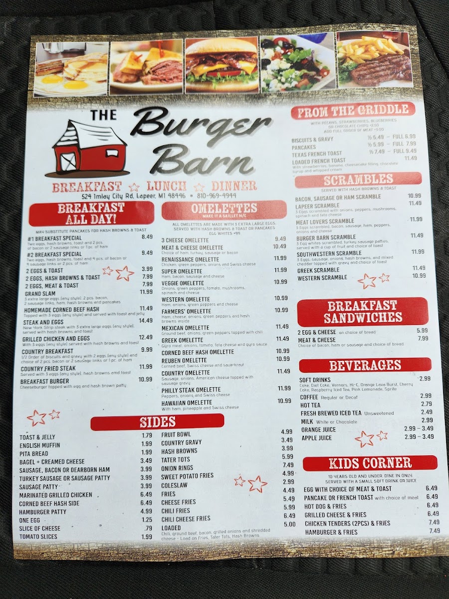 Welcome to The Burger Barn Of Lapeer, a charming eatery located at 524 Imlay City Rd, where cleanliness meets incredible flavors. Renowned for its delightful menu, the restaurant excels in hearty dishes, including must-try items like the house-breaded catfish and well-seasoned grilled chicken salad. Customers rave about the generous portions, fresh ingredients, and exceptional service, making every meal memorable. Whether you're a fan of breakfast or lunch, you'll find plenty to love here, from large salads to mouthwatering burgers. With an inviting atmosphere and a warm staff, The Burger Barn is a dining destination that leaves you craving more.